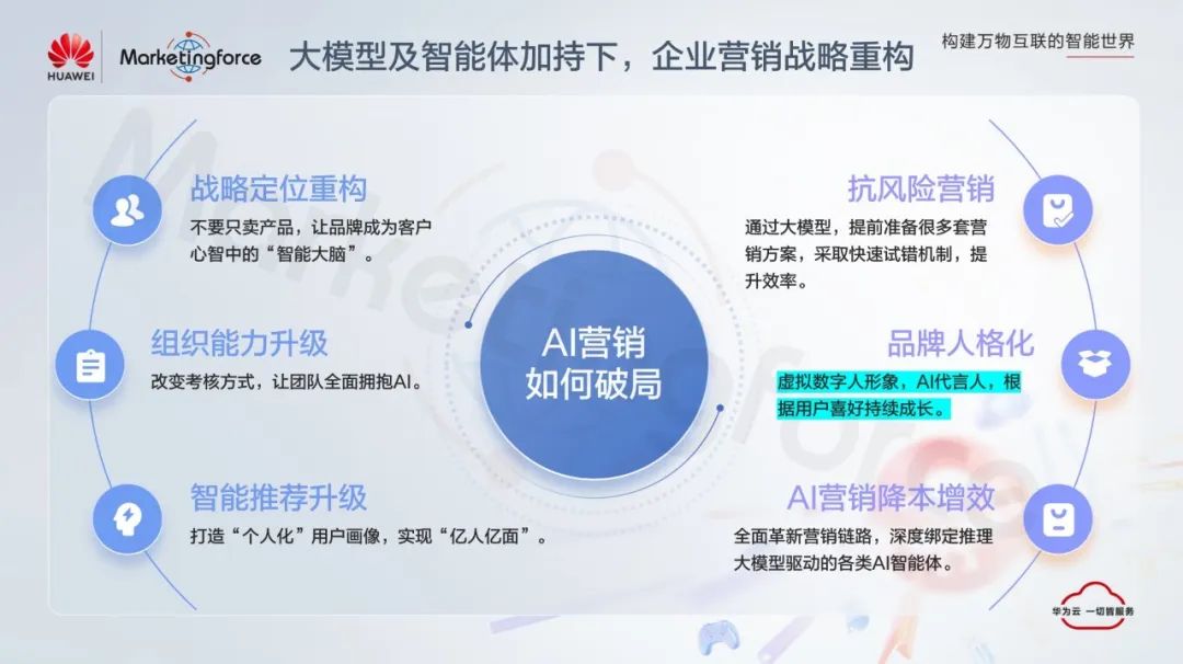 去年年底,Marketingforce与华为云就曾基于双方在技术、资源与市场方面的优势互补,共同发布全新的AI Agent营销智能体联合解决方案,不仅为零售行业提供了"云端智能决策中枢",更依托AI-Agentforce智能体中台的自主学习与实时进化能力,帮助企业营销决策实现从经验主导推向数据驱动的智能蝶变。