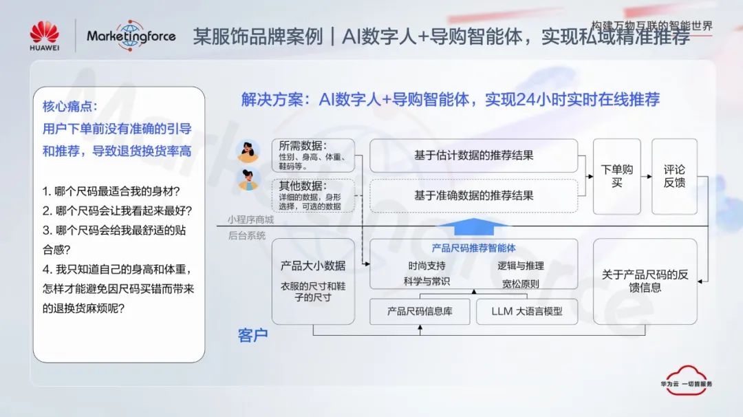 在服装零售领域,Marketingforce提出的"AI数字人+导购智能体"解决方案展现出革命性价值。通过实时汇总线上线下全渠道用户行为数据,为企业构建包含体型特征、风格偏好、价格敏感度的用户模型。