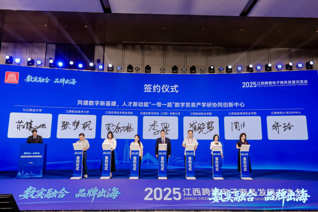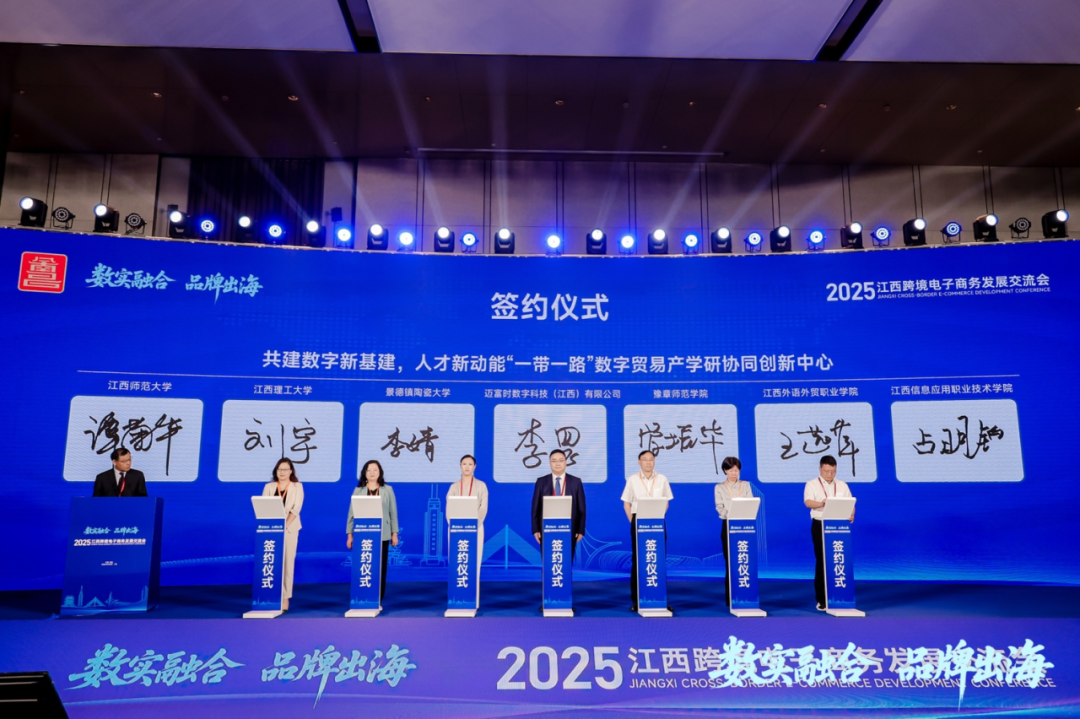 5月7日,数字新基建,人才新动能——“一带一路”数字贸易产学研协同创新中心签约仪式在2025江西跨境电子商务发展交流会上成功举办。