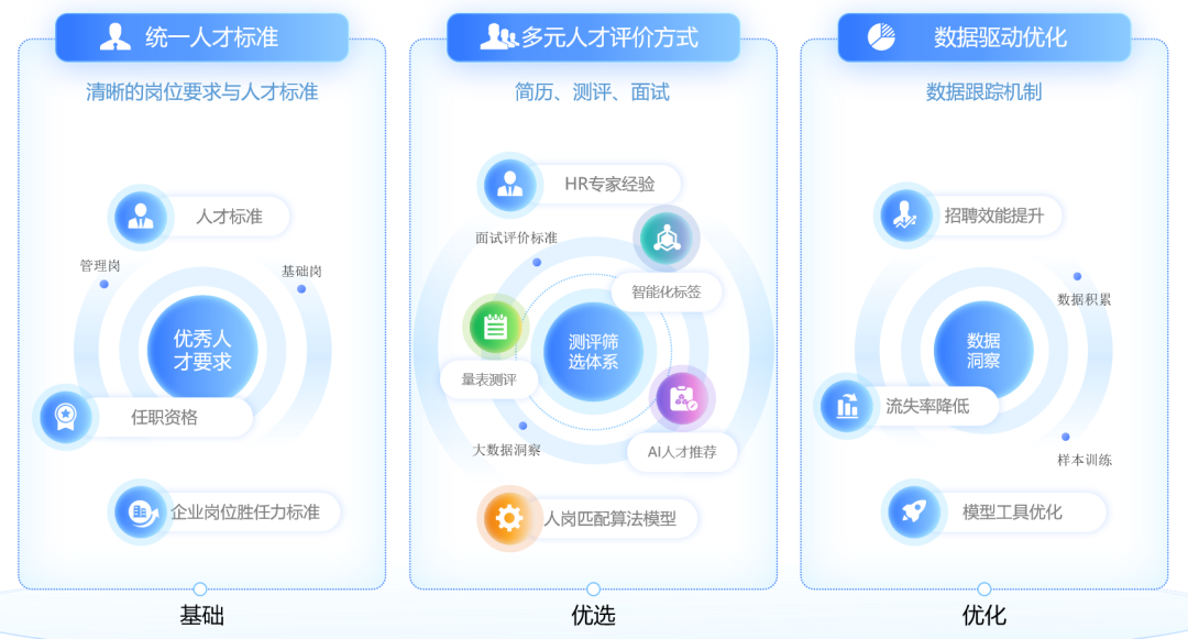 在招聘环节,AI可以根据实际招聘数据优化职位画像,针对教育、技能、经验等方面智能评估进行人岗匹配,提高招聘效率。AI还可以分析简历中的风险点,提示HR可能出现的问题,减少招聘风险。