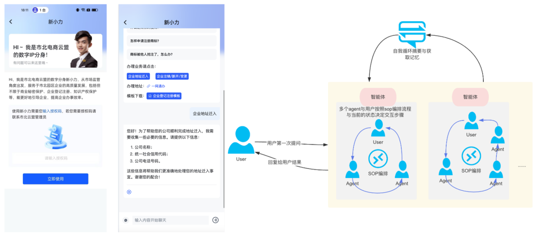 通过SOP流程,Marketingforce使知识库具备更强的任务完成能力。例如,在市政项目中,我们创建了一个智能数字IP分身,来处理企业的地址迁入、注销、新开和变更等任务。每个流程节点都通过SOP管理,确保任务完成。