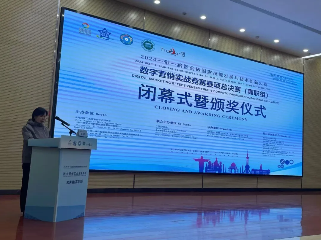 在颁奖典礼上,金砖国家技能发展与技术创新大赛组委会领导对本次竞赛的成功举办表示热烈祝贺,并对所有参赛团队的精彩表现给予了高度评价。同时,她指出,珍岛集团为本次大赛提供了真实营销生态平台,为参赛选手提供了一个展示自我、交流学习的优质平台,不仅有助于选拔和培养更多优秀的数字营销专业人才,也将进一步加深一带一路及金砖国家在数字经济领域的合作与交流,推动全球数字营销行业的创新与发展。